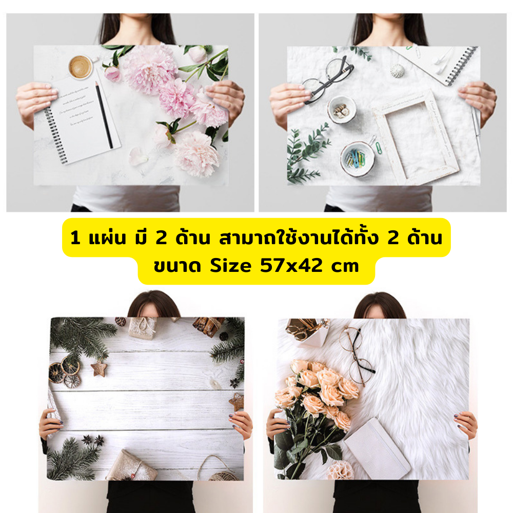 ฉากถ่ายสินค้า ฉากถ่ายภาพ ฉากถ่ายอาหาร 1 แผ่น ใช้งานได้ 2 ฝั่ง ลายไม่ซ้ำกัน