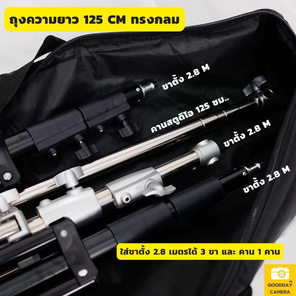 (จะใส่ขาตั้ง 2.8 เมตรได้ 3 ขา และคาน 125 ซม. 1 คาน )