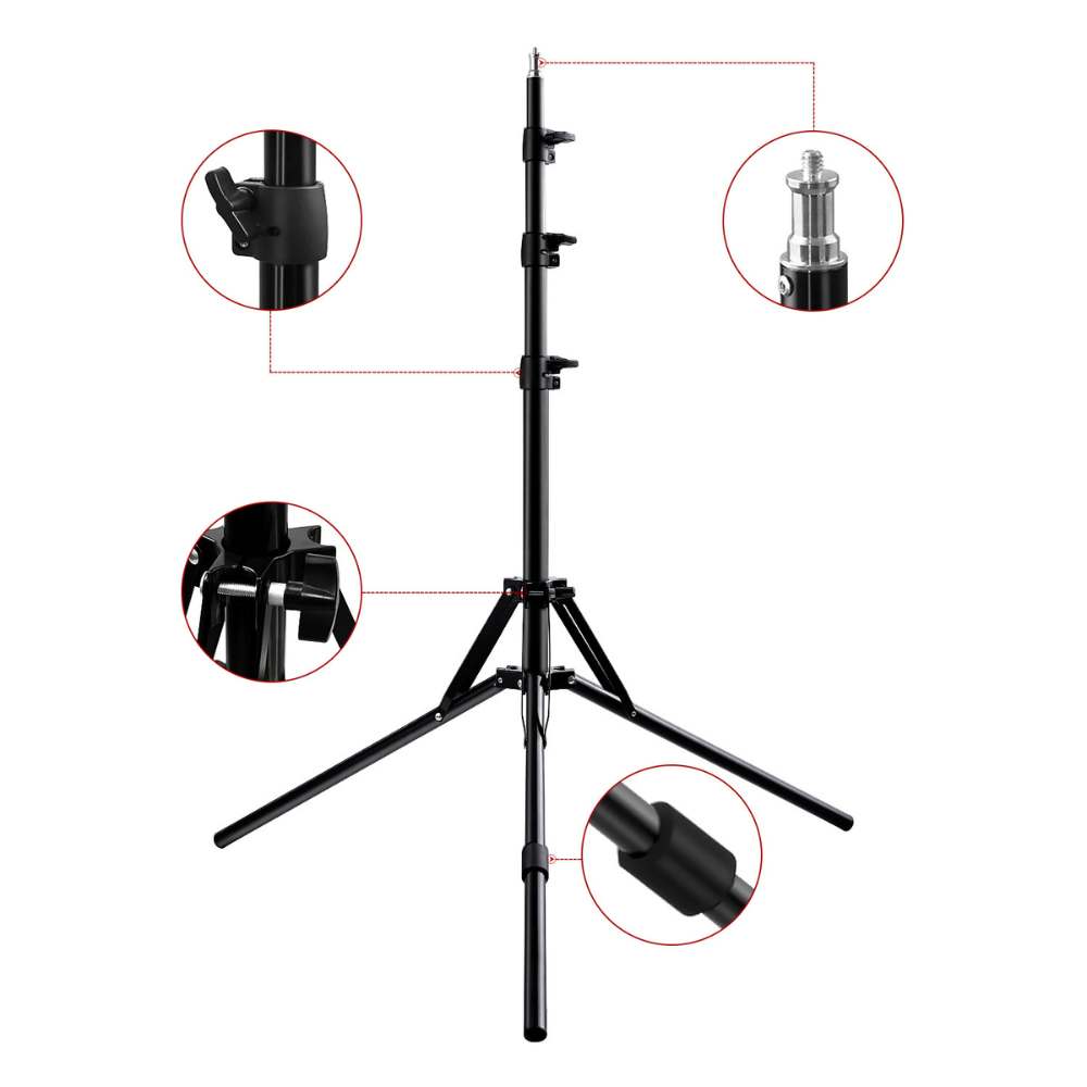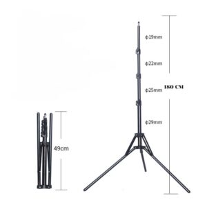 ขาตั้งกล้อง ขาตั้งมือถือ ขาตั้งแฟลช ขาตั้งไฟ พกพา พับได้ สูง 1.8 m เหมาะสำหรับพกพา เวลาพับเก็บสั้นเพียง 50 cm ขาตั้งกล้องกางออกยึดได้สูงถึง 1.8 m ด้านบนหัวเกลียว 1/4 สามารถใช้งานได้กับ อุปกรณ์ทั่วไป เช่นไฟ แฟลช ไฟสตูดิโอ Softbox สำหรับใช้พกพาไปนอกสถานที่ ประยุกต์ใช้ได้กับอุปกรณ์ได้หลายอย่าง
