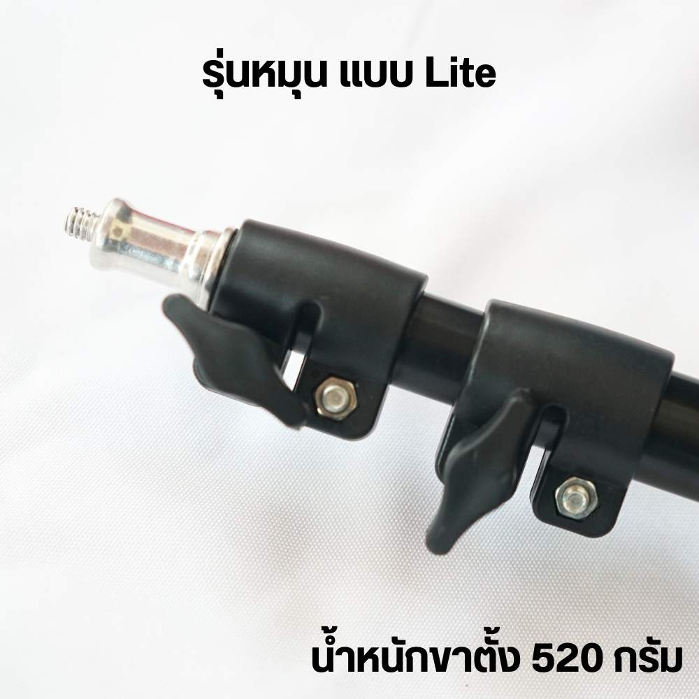 ใช้กับอุปกรณ์สตูดิโอได้หลากหลาย เช่น ร่มสะท้อน ร่มทะลุ ไฟแฟลช กล้อง DSLR ไฟต่อเนื่อง เป็นต้น