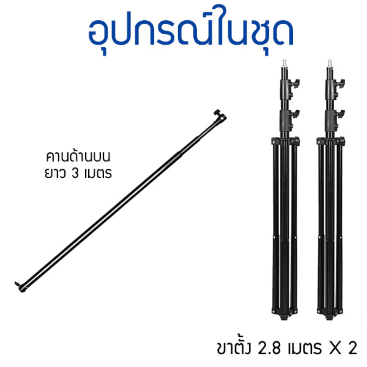 อุปกรณ์ในชุดจะมี ขาตั้งกางได้สูง 2.8 เมตร 2 ชิ้น และ คาน ด้านบน 1 ท่อน