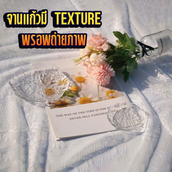 - จานแก้วแบบผิวไม่เรียบ มีtexture สวยงาม ช่วยทำให้ภาพถ่ายของคุณแตกต่าง
