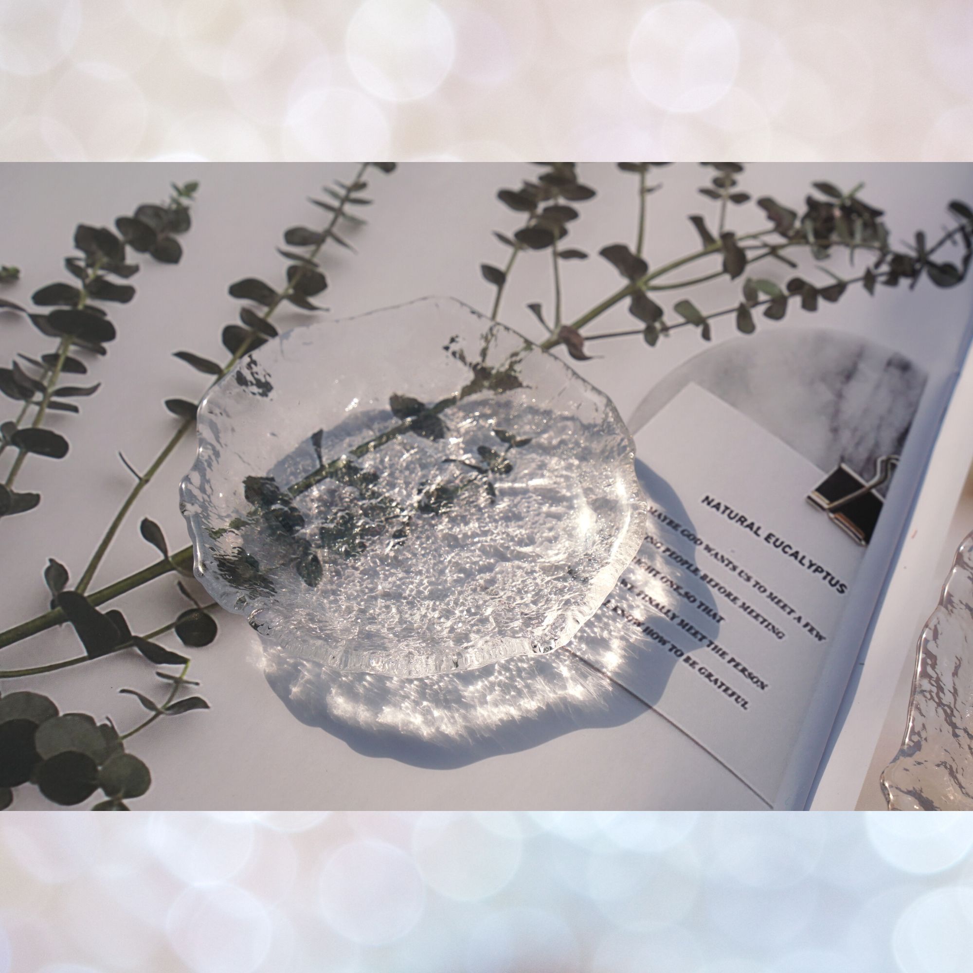 จานแก้ว จานสวยๆ พรอพถ่ายรูป ถาดใส ถาดแก้วใส จานกลม มี texture พร็อพถ่ายภาพ ตกแต่งภาพ